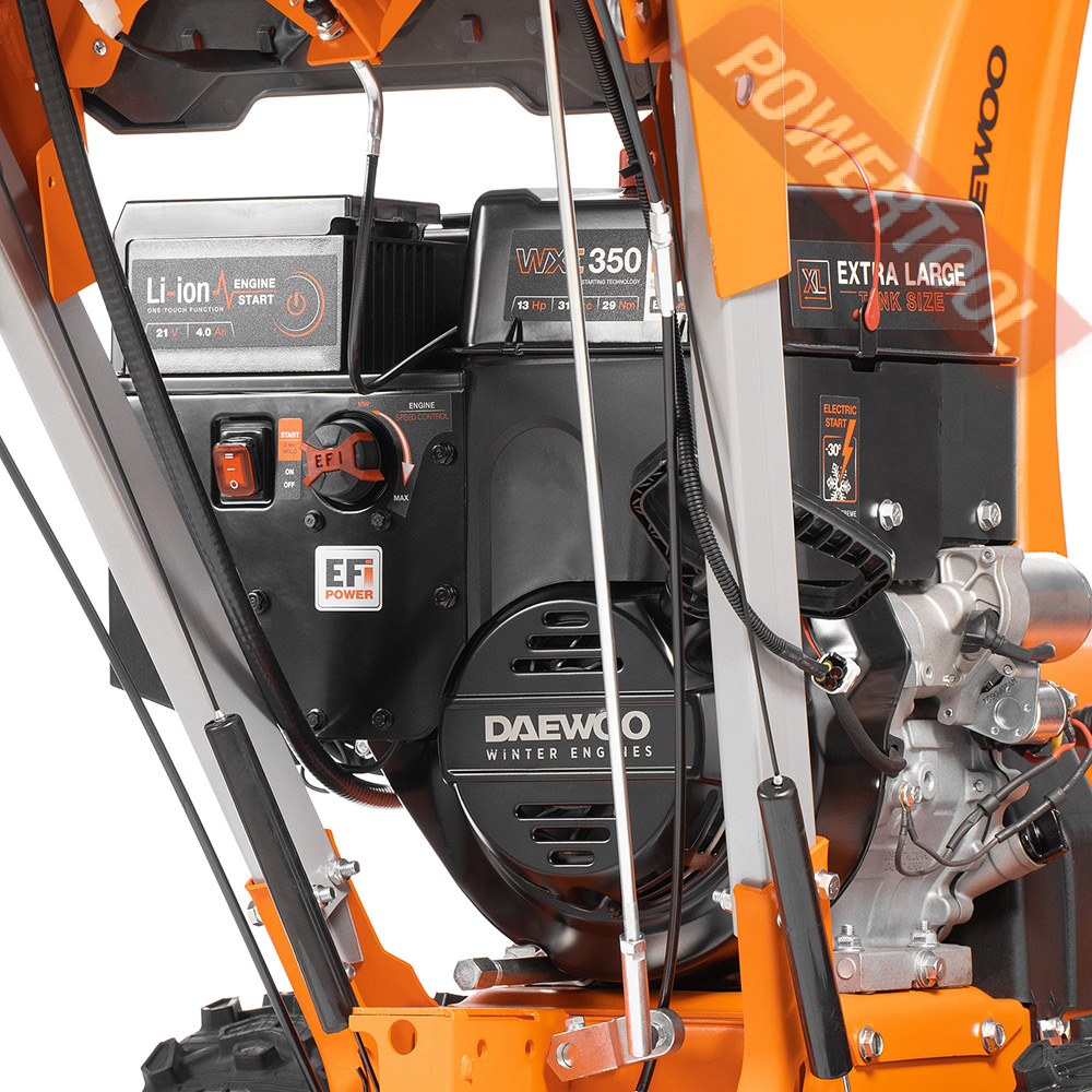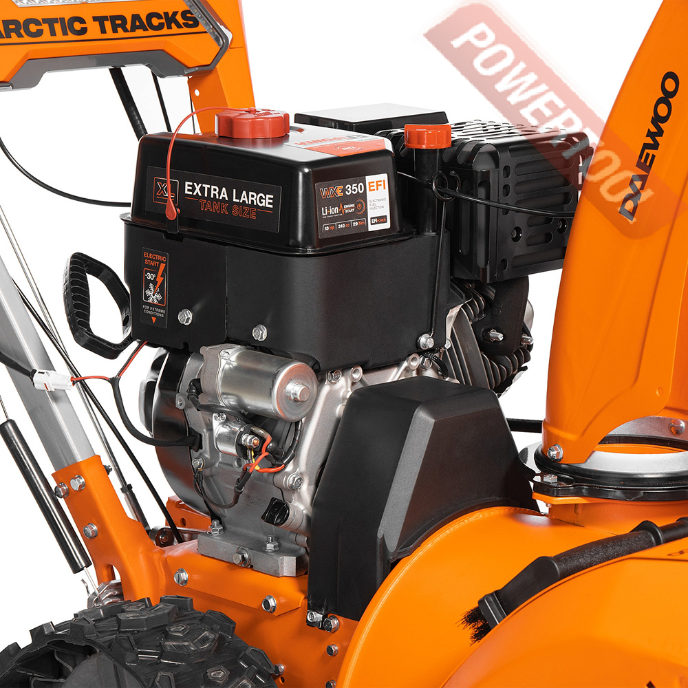 • WXE 350 EFI инжекторный двигатель DAEWOO. Инновационный двигатель WXE 350 EFI с системой непосредственного впрыска топлива разработан специально для снегоуборщиков. Обладает увеличенной до 25 процентов мощностью и сниженным до 20 процентов расходом топлива по сравнению с карбюраторными моделями.