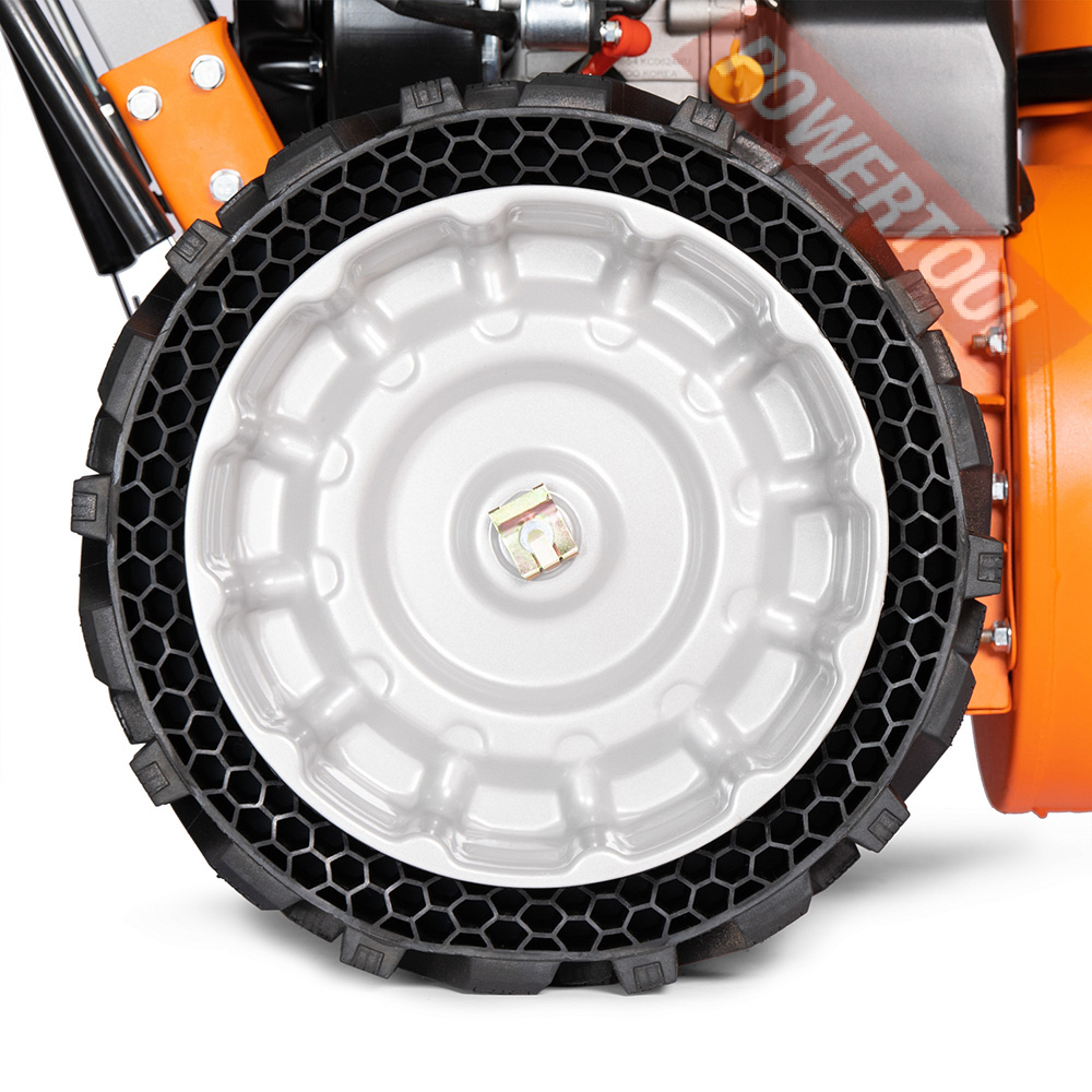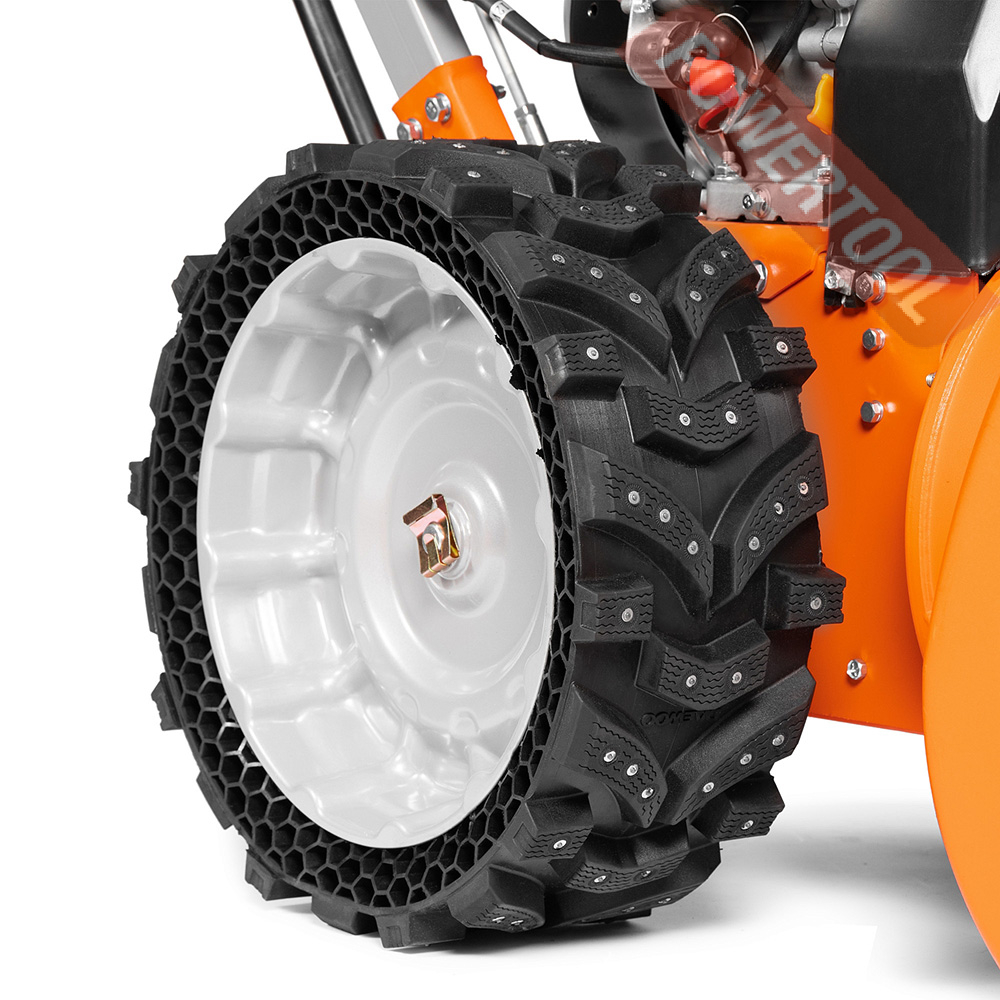• Уникальные колеса EX ICE WHEELS. Широкие безвоздушные колеса созданы специально для снегоуборщиков. Колеса EX ICE обладают лучшим сцеплением с поверхностью среди всех зимних шин. Лучшая проходимость и маневренность в классе снегоуборщиков.