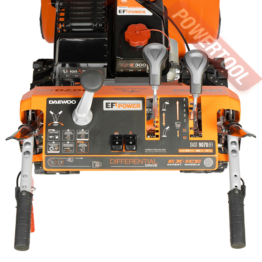 - WXE 300 EFI инжекторный двигатель DAEWOO. Инновационный двигатель WXE 300 EFI с системой непосредственного впрыска топлива разработан специально для снегоуборщиков. Обладает увеличенной до 25 процентов мощностью и сниженным до 20 процентов расходом топлива по сравнению с карбюраторными моделями.
