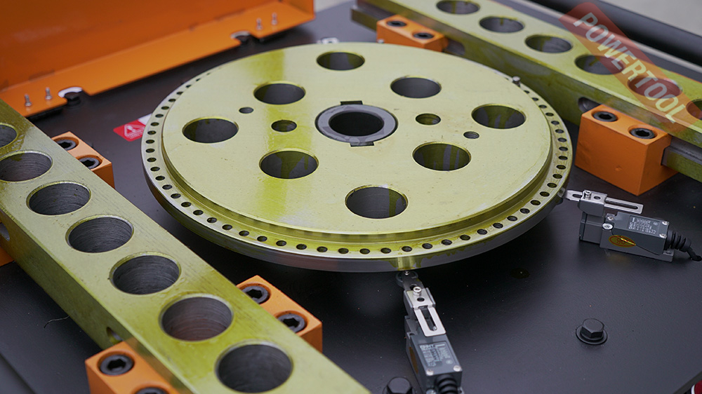 • Настройка угла гибки осуществляется с помощью штифтов, устанавливаемых на планшайбу. Шаг изменения угла равен 5 градусам.