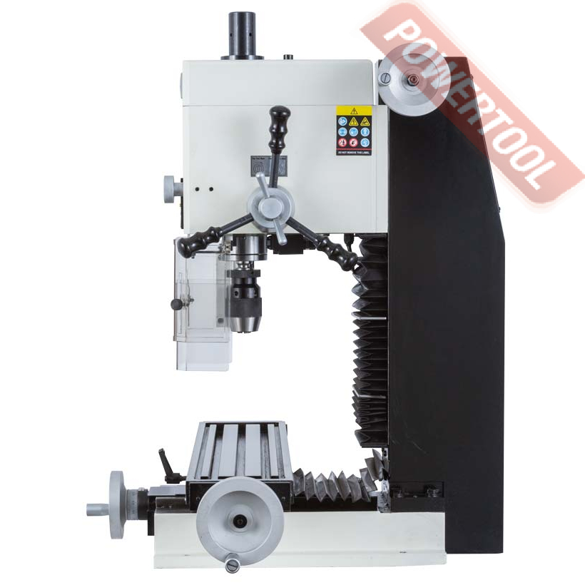 Подключение станка к электросети с напряжением 220В. Применяется для выполнения широкого спектра мелких сверлильных и фрезерных работ. Наличие микроподачи пиноли шпинделя с цифровой индикацией позволяет добиться точного контроля вертикальной подачи. Максимальный ход пиноли шпинделя составляет 68 мм. Контроль перемещений в продольной и поперечной плоскости осуществляется лимбами на штурвалах с ценой деления 0,02 мм, в вертикальной плоскости – 0,01 мм.