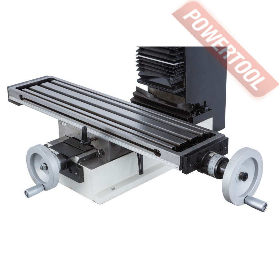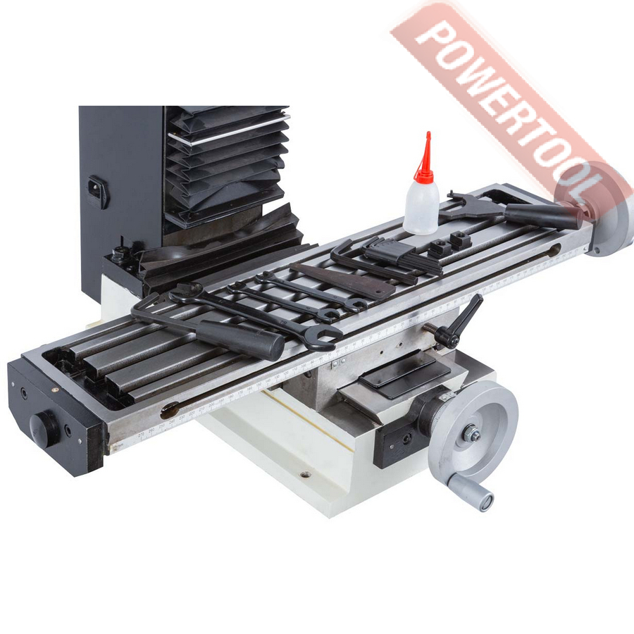 Крестовый рабочий стол размером 595х140 мм перемещается по направляющим скольжения типа ласточкин хвост. Закрепление тисков и других зажимных приспособлений осуществляется с помощью 3-х Т-образных пазов размером 12 мм и расстоянием между ними 35 мм. Интегрированный дисплей цифровой индикации линейных перемещений по осям X, Y, Z, позволяет достигать большей точности изготовления деталей и сокращение времени обработки.