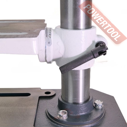 Сверлильный станок, 350 Вт, 220 В, max диаметр сверления 13 мм, частота вращения шпинделя 620-2620 об/мин, 5 скоростей, ступенчатая регулировка оборотов, посадочное сверлильного патрона B16, диапазон хвостовиков для патрона 1,5-13 мм, ход пиноли шпинделя 50 мм, вылет шпинделя 105 мм, шпиндель-стол 220 мм, шпиндель-основание 300 мм, диаметр стойки 46 мм, размер основания 290х190 мм, размер стола 160х160 мм, наклон стола влево/вправо 45/45 градусов, угол поворота стола 360 градусов, 2 Т-образных паза, вес 14 кг, в комплекте патрон ключевой В16 1,5-13 мм, защитный экран, набор инструментов, тиски.