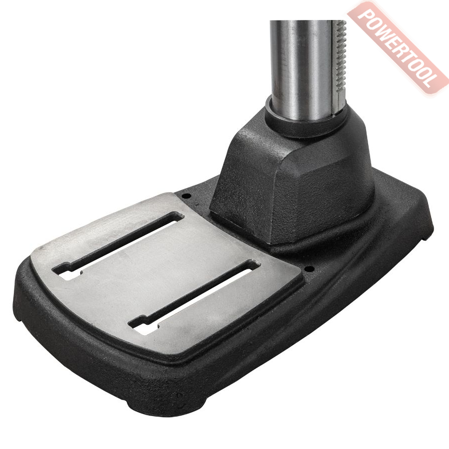 Предусмотрен основной набор регулировок, включая смену частоты вращения шпинделя за счет переустановки ремней (передача двухступенчатая). На одной из ступеней - натяжитель с быстрозажимной фиксацией барашком, что позволяет ослаблять его без использования вспомогательных инструментов. Станок оборудован лазерным указателем центра сверления в виде перекрестья двух лучей и светодиодным фонариком подсветки с регулировкой направления светового луча.