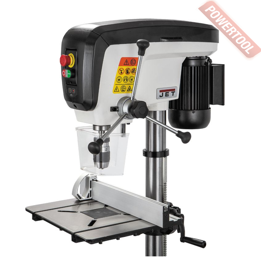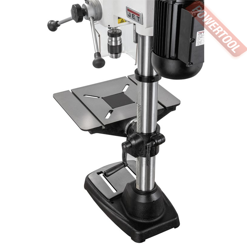 Сверлильный станок по дереву JET JDP-15B 400В - настольный вариант профессионального сверлильного станка для применения в столярной мастерской. Его рабочие параметры оптимизированы для решения задач, возникающих при деревообработке: увеличен ход пиноли шпинделя, повышена максимальная скорость вращения, рабочий стол увеличенной площади имеет прорези для крепления заготовки с помощью струбцин и большое отверстие в центре для сменной (жертвенной) вставки. Важная особенность – наличие четырех регулировочных винтов под основанием, что позволяет использовать вставки, сделанные из материала разной толщины. В остальном конструкция аналогична традиционным моделям, ориентированным на сверление металла, и не уступит им с точки зрения жесткости, массивности и запаса прочности.