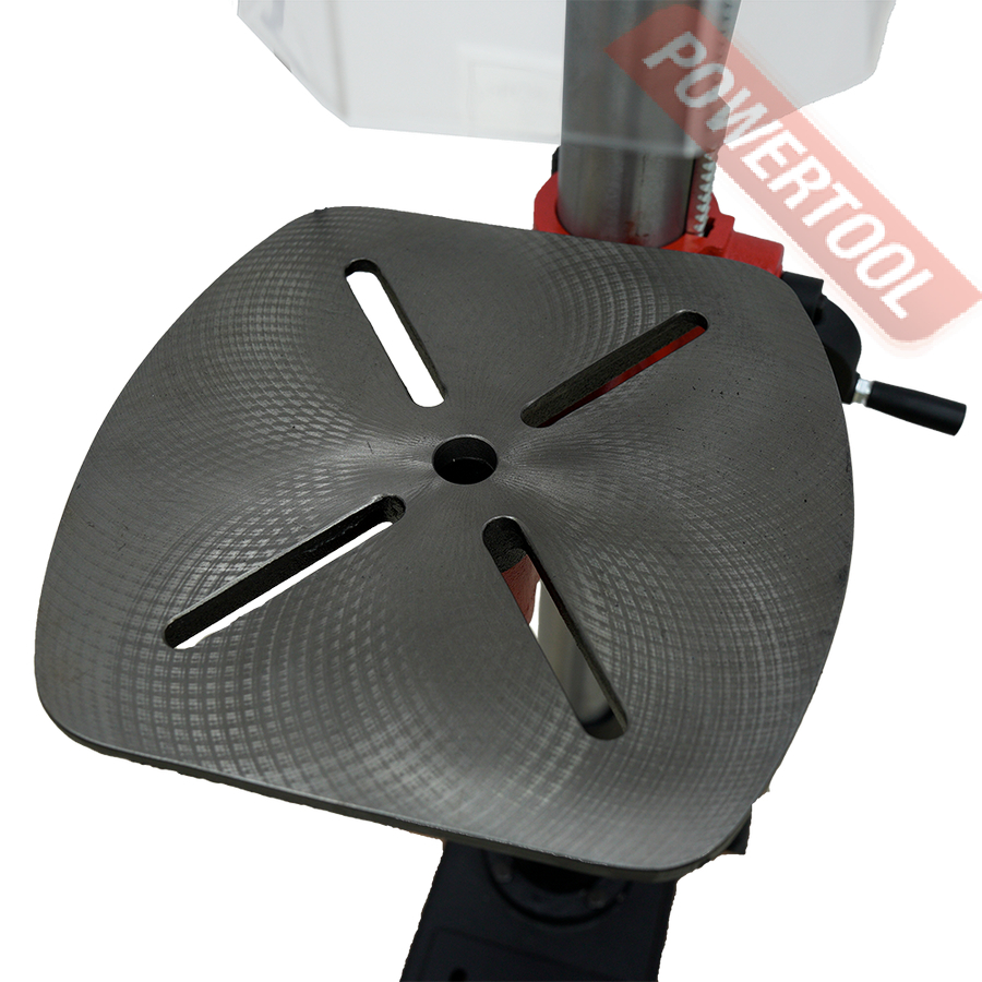 Одной из ключевых особенностей JIB DP15VL является увеличенный ход пиноли шпинделя до 102 мм, который обеспечивает точный контроль глубины сверления. Расстояние от оси патрона до колонны составляет 200 мм, что позволяет работать с более крупными деталями, а максимальные расстояния от шпинделя до стола и основания — 750 мм и 1240 мм соответственно — делают станок подходящим для работы с высокими заготовками.