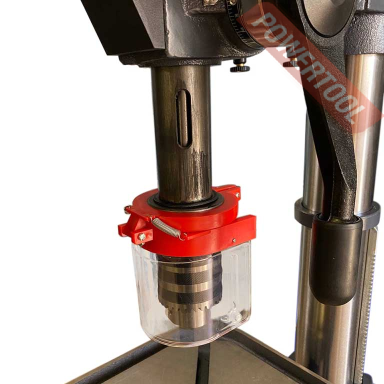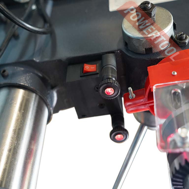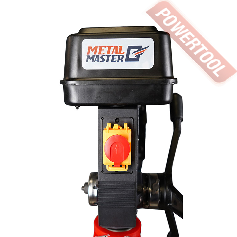 Сверлильный станок по металлу METAL MASTER M25D предназначен для сверления сквозных и глухих отверстий в черных и цветных металлах диаметром до 25 мм. На лицевой стороне сверлильной головы расположены кнопки включения и выключения станка с крышкой, которая также используется как аварийный выключатель. Станок оснащен быстрозажимным патроном с регулируемым защитным экраном, что обеспечивает безопасность для оператора.