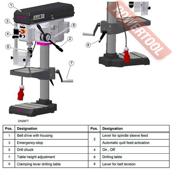 - Лампа освещения станка встроена в сверлильную головку.