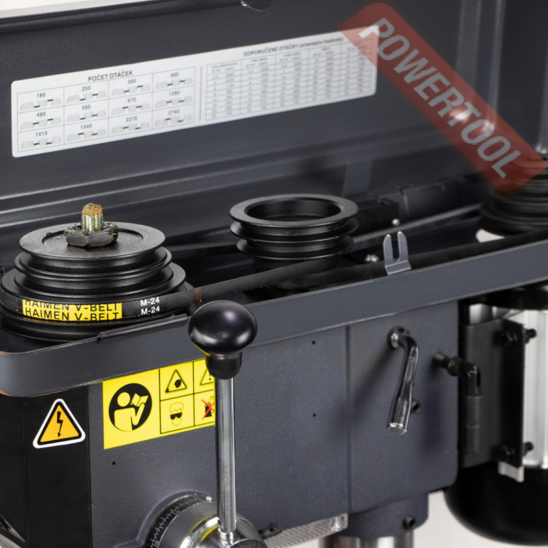 Сверлильный станок по металлу PROMA E-1516B/230 применяется, главным образом, для обработки металлических заготовок в ремонтных цехах, мелкосерийном производстве, столярных мастерских. Сюда можно отнести рассверливание, образование как сквозных, так и глухих отверстий, растачивание, зенкование и др. Шпиндельный узел выполнен жестким и виброустойчивым. Опорами шпинделя служат шарикоподшипники. Шпиндель оснащен конусом MK-2 в который можно поставить патрон на оправке или инструмент с конусом морзе.