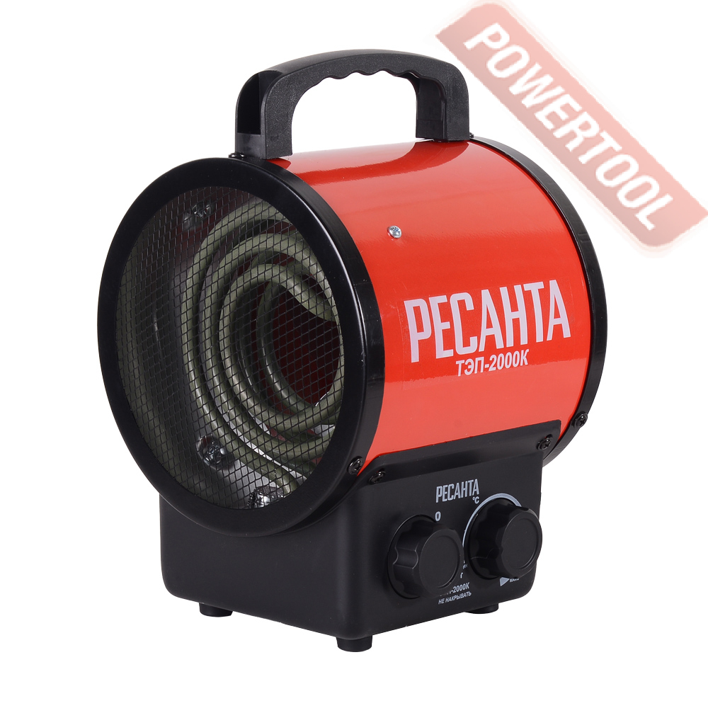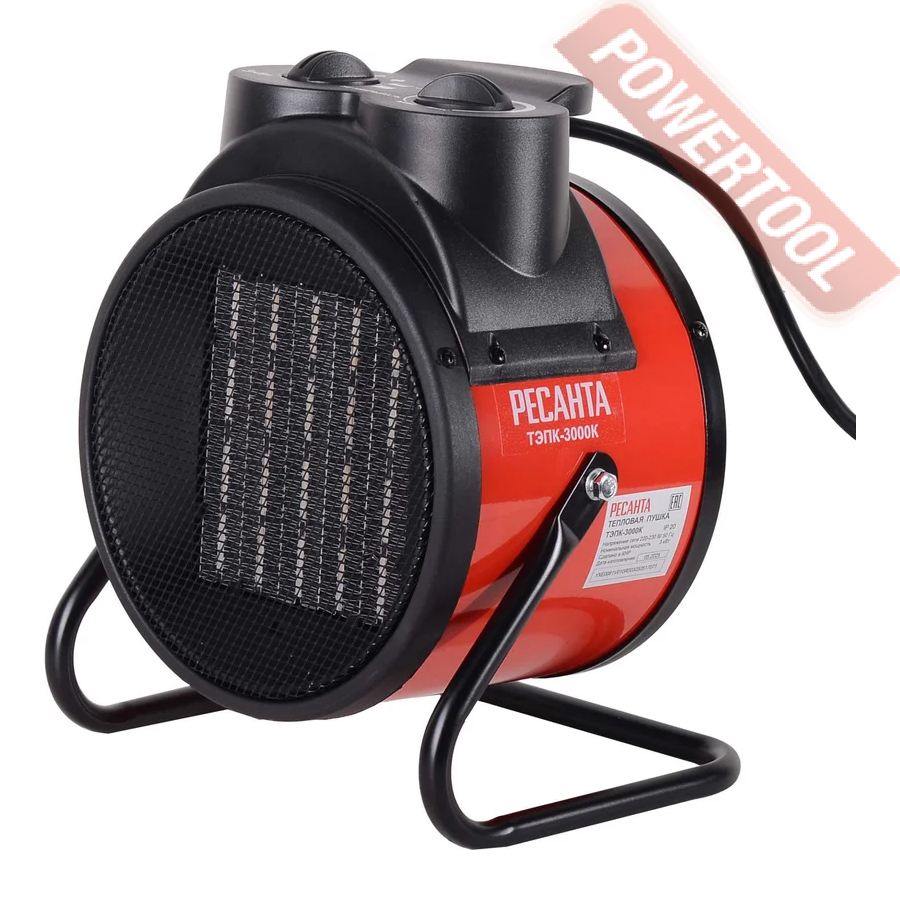• Функция вентилятора. Аппарат способен работать как обычный вентилятор, создавая мощный направленный поток. Это позволяет использовать электрическую тепловую пушку даже летом.