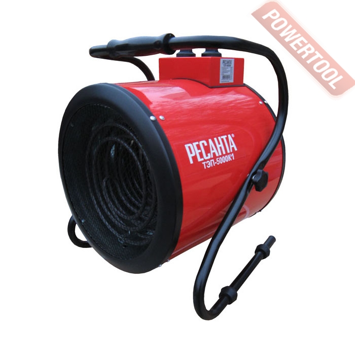 • Функция вентилятора. Аппарат способен работать как обычный вентилятор, создавая мощный направленный поток. Это позволяет использовать электрическую тепловую пушку даже летом.