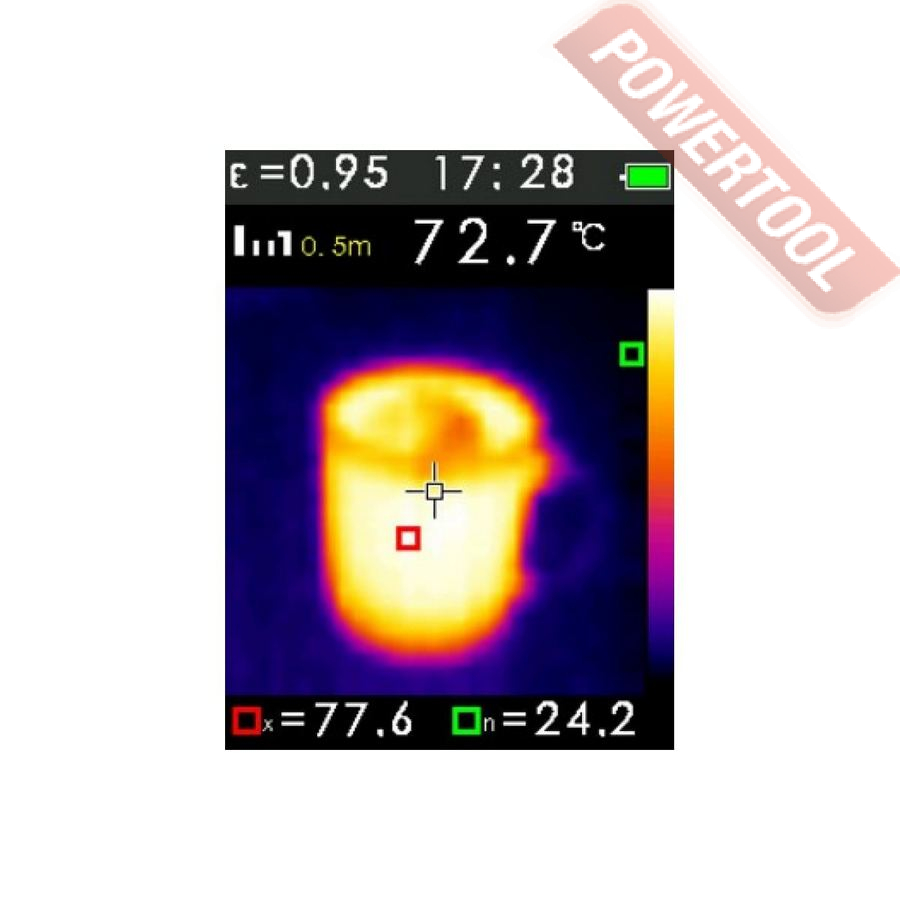 Слияние видимого изображения с термограммой позволяет выявлять в скоплении людей человека с повышенной температурой выделяя его цветом. Температуру человека покажет сражу же при наведении на него при более близком расстоянии.