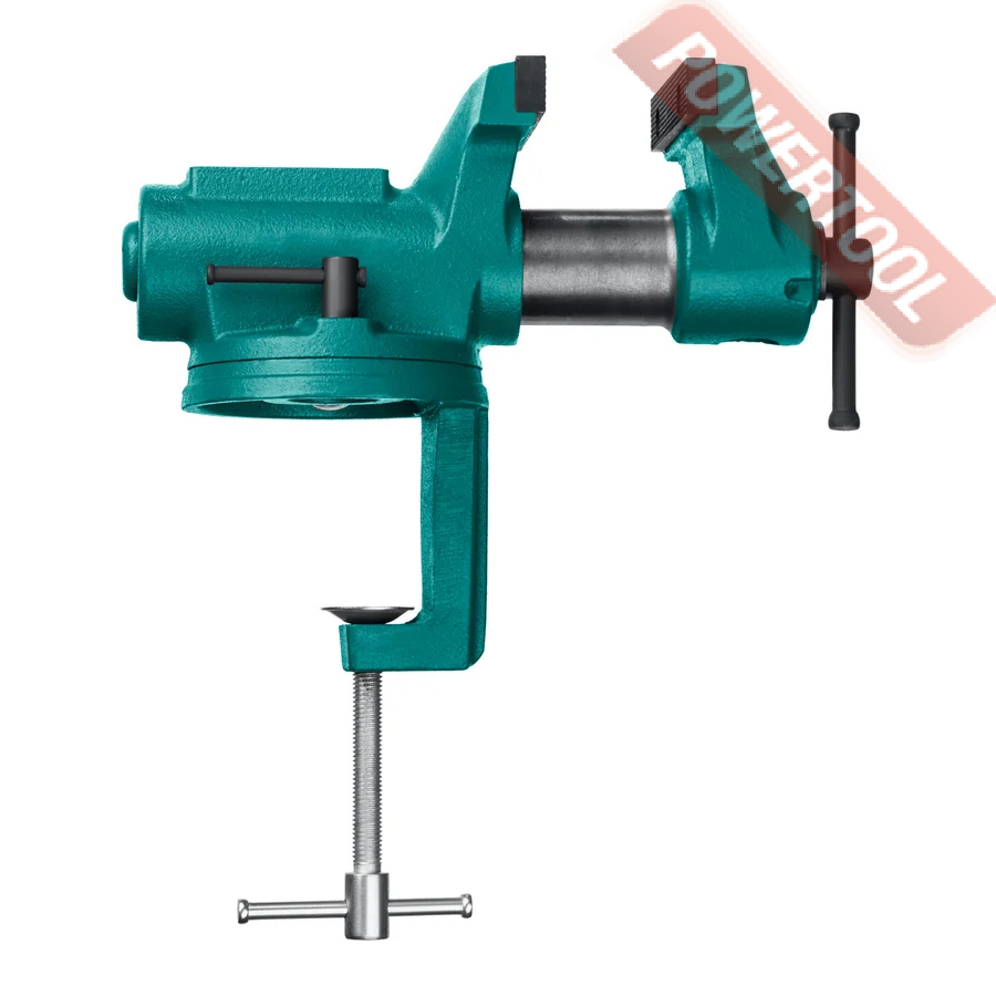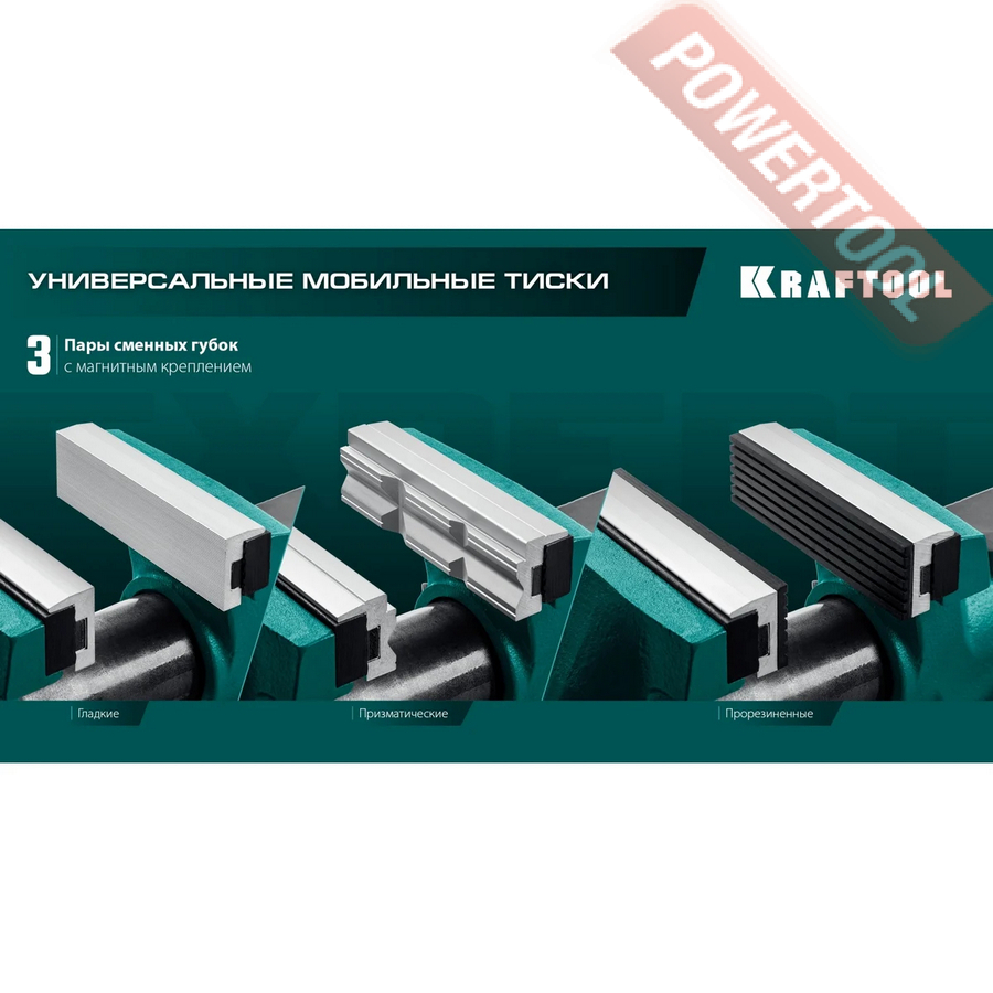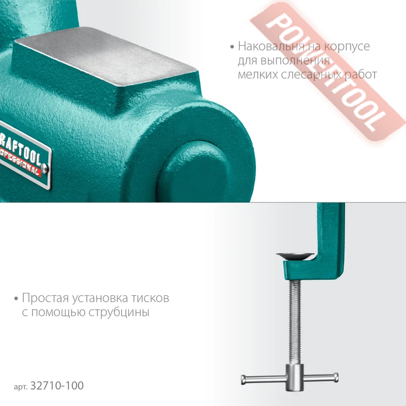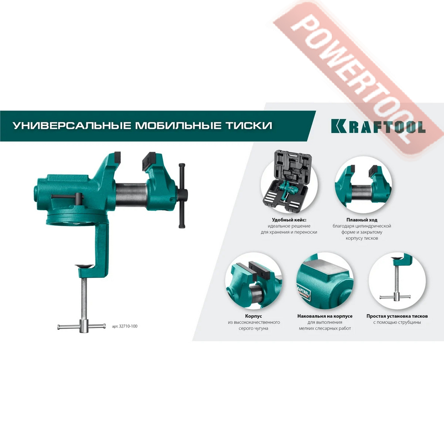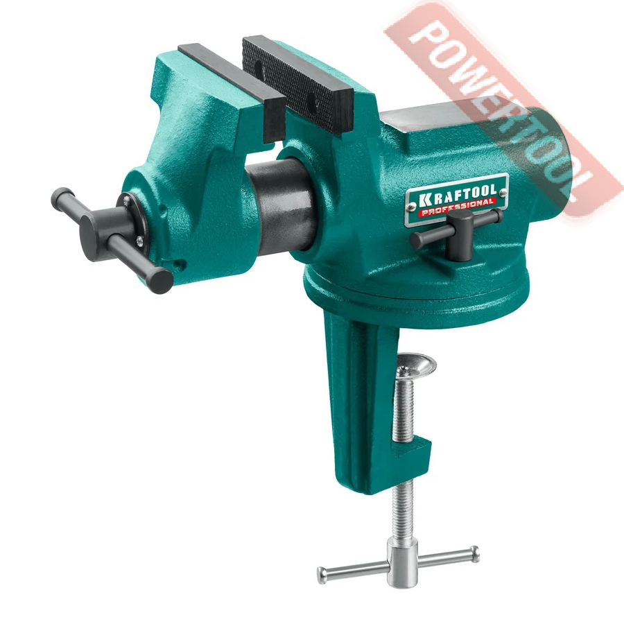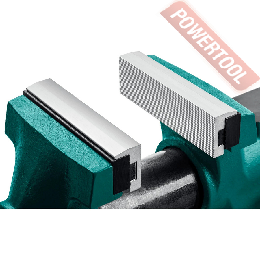 Тиски слесарные для точных работ, ширина губок 102 мм, рабочий ход 65 мм, высота губок 22 мм, глубина зева 52 мм, наковальня, струбница, функция поворота 360 градусов, размер ДхШхВ 245х121х265 мм, вес 6 кг, три пары сменных губок, кейс.