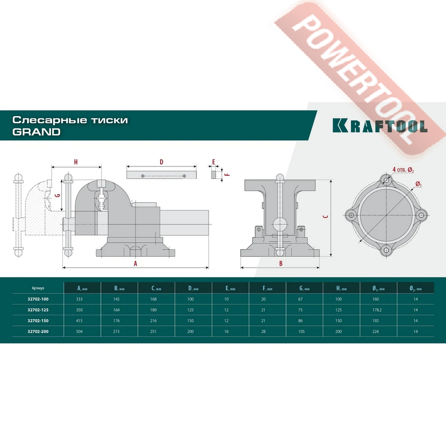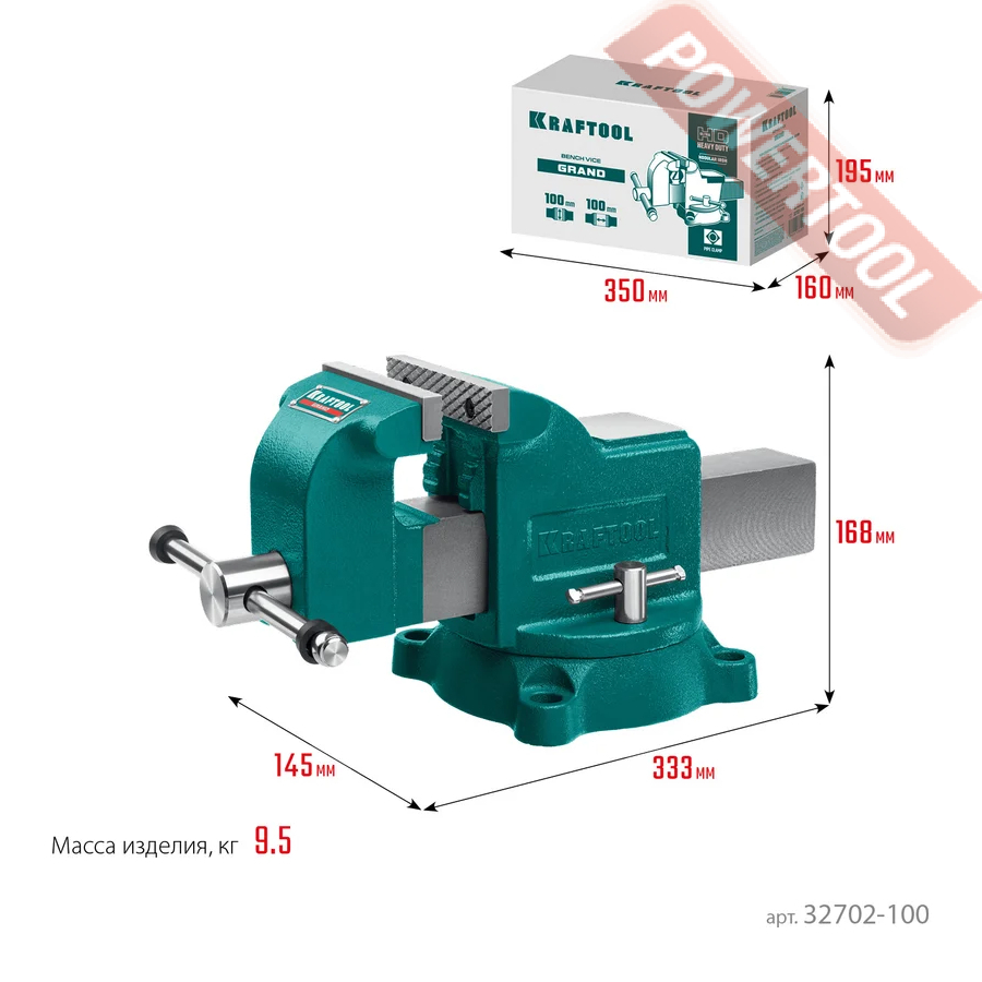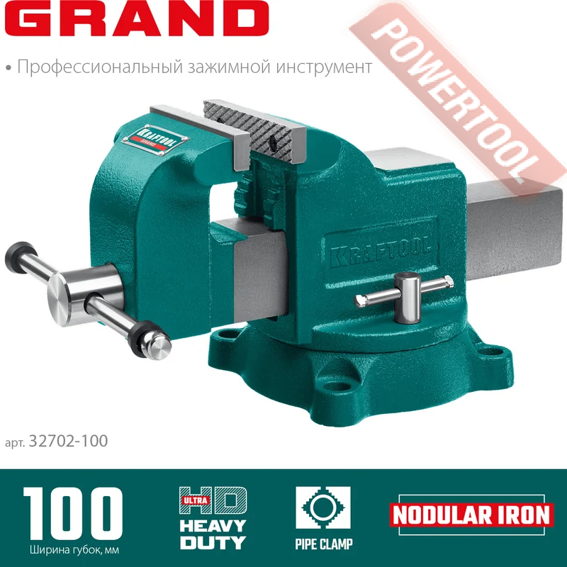 Тиски слесарные поворотные 100х100 мм KRAFTOOL Grand арт.32702-100