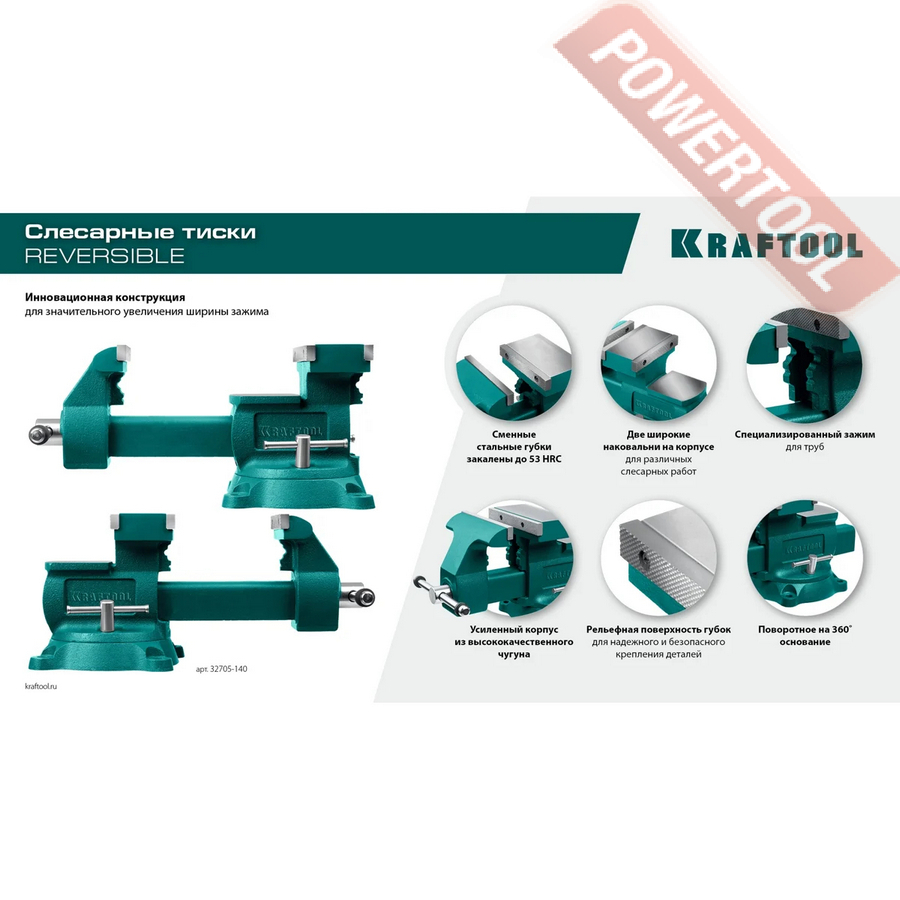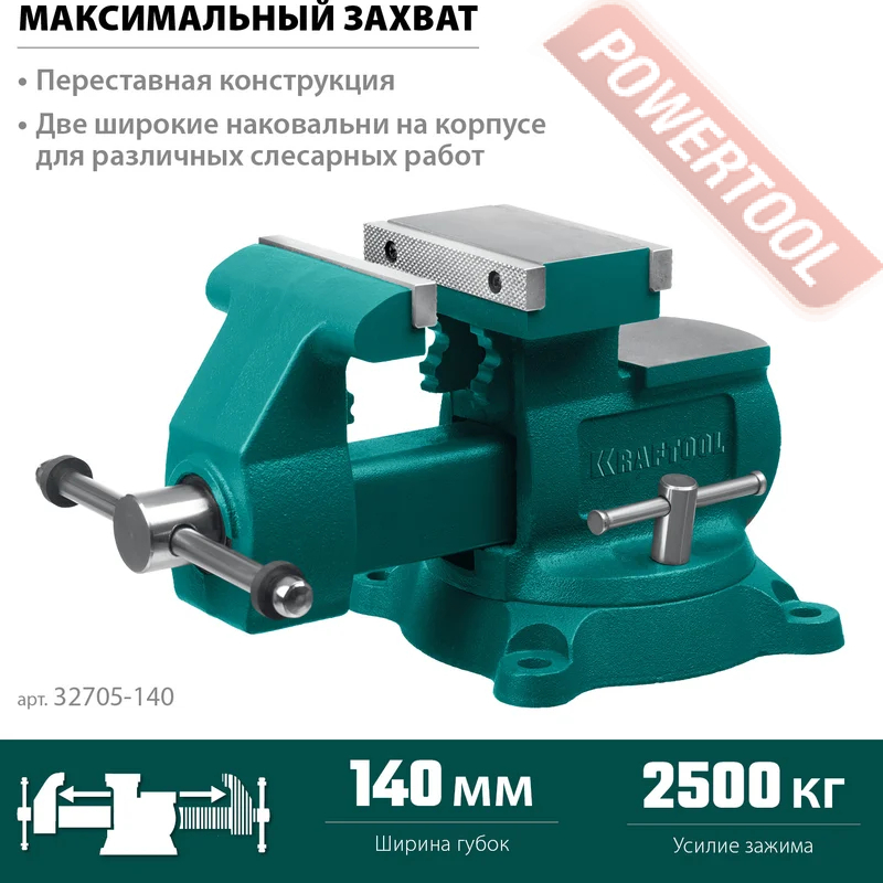Тиски слесарные поворотные 140х273 мм KRAFTOOL Reversible арт.32705-140