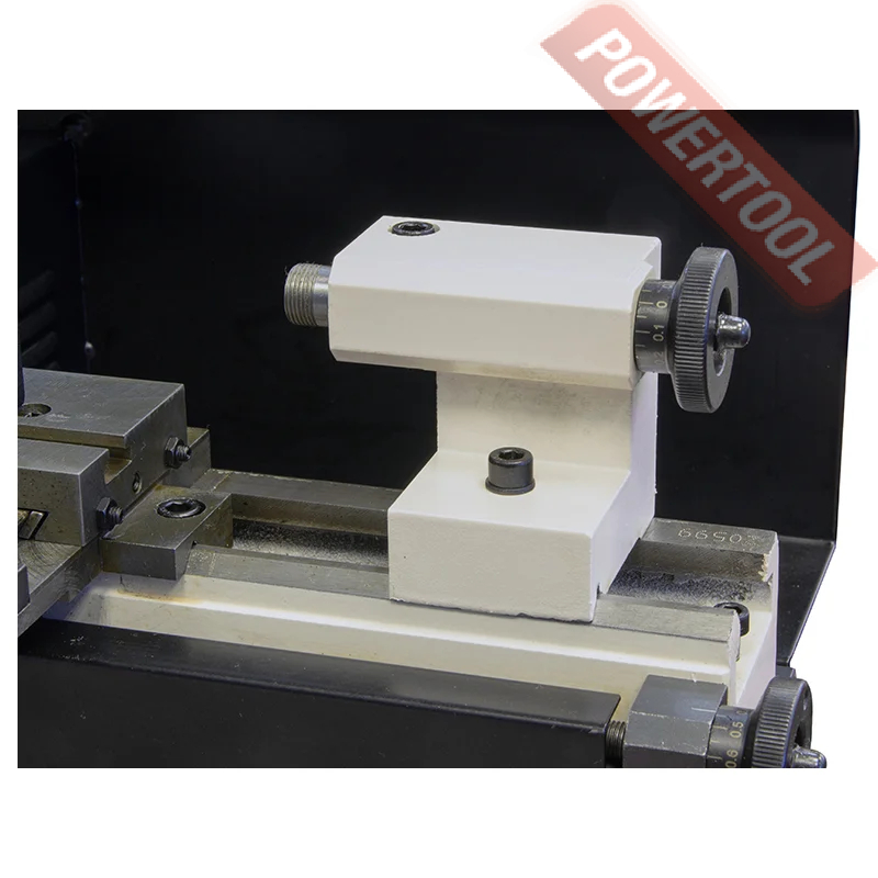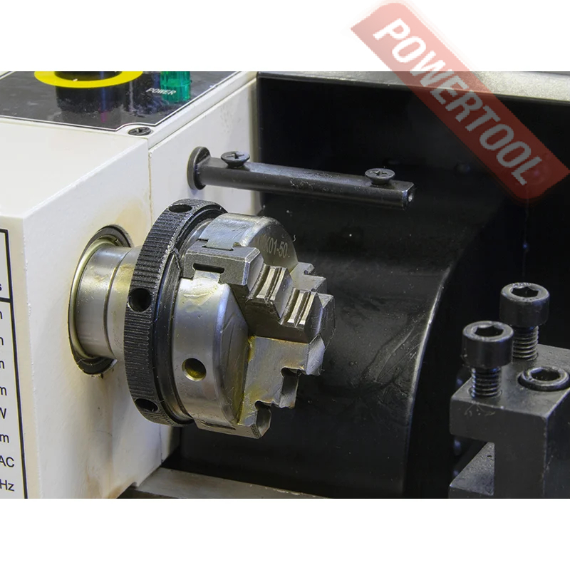 Токарный станок по металлу, 250 Вт, 220 В, max диаметр обточки над станиной 110 мм, расстояние между центрами 125 мм, проходное отверстие шпинделя 10 мм, частота вращения шпинделя 400-3600 об/мин, max размер резца 8х8 мм, ход верхнего суппорта 45 мм, ход пиноли задней бабки 20 мм, диаметр пиноли задней бабки 10 мм, размер ДхШхВ 500х400х310 мм, вес 13 кг, патрон токарный 50 мм, набор инструмента.
