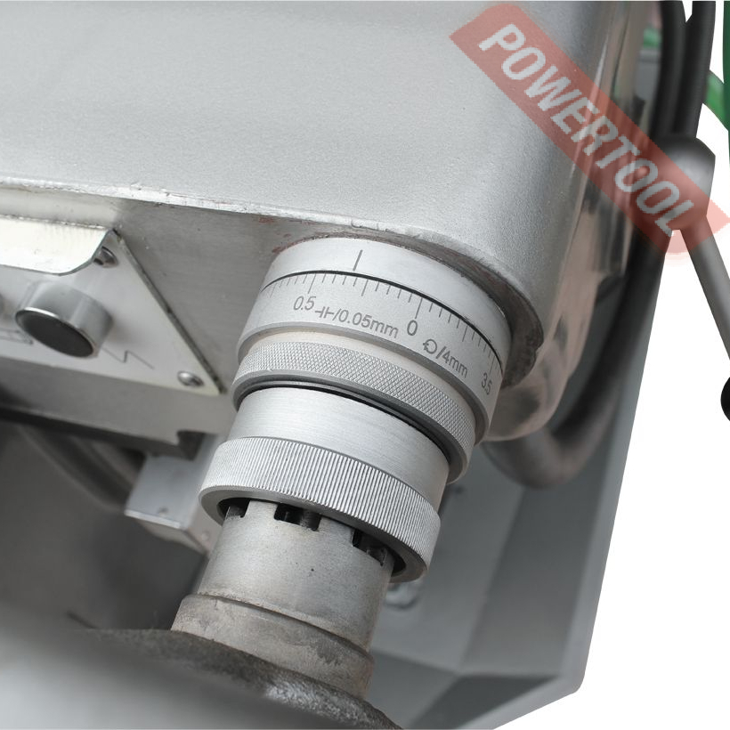 Для расширения функциональности станка, фрезерная головка имеет возможность наклона влево/право в диапазоне +/-45 градусов. Устройство цифровой индикации (УЦИ) позволяет повысить точность работы и снизить возможность брака. Станок оборудован подачей СОЖ в зону обработки, светодиодной лампой освещения рабочей зоны и другими полезными опциями.
