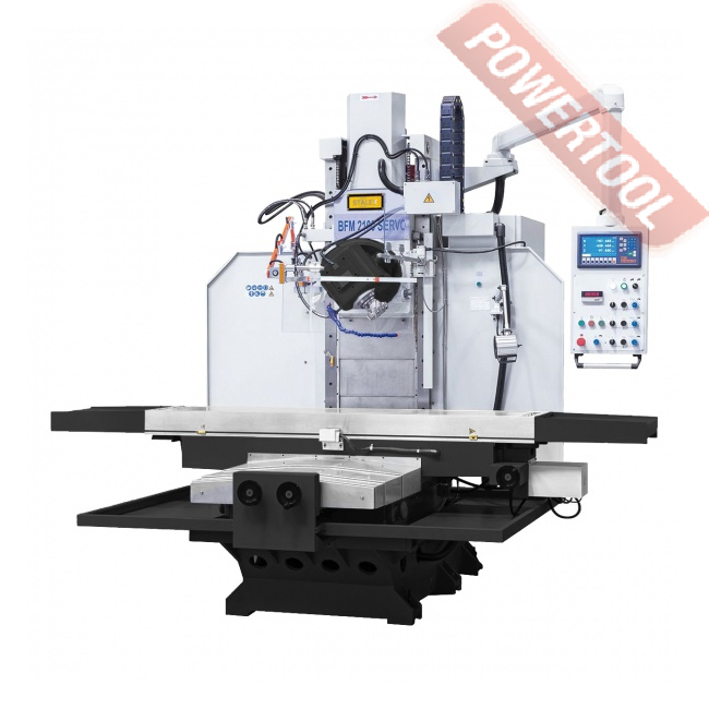 Универсальный фрезерный станок по металлу STALEX BFM2100 DRO используют для обработки крупногабаритных деталей торцовыми, а также цилиндрическими, концевыми, дисковыми и фасонными фрезами. Обработку деталей можно производить при движущемся столе и неподвижной фрезерной головке, при неподвижном столе и подачи головки или при одновременно движущимся столе и фрезерной головки. Фрезерная головка вращается в двух плоскостях не зависимо друг от друга на угол 360 градусов, что позволяет вести фрезерование под углом, как в горизонтальном, так и в вертикальном положении фрезерной головы. Бесступенчатая продольная и поперечная подачи. Станина выполнена из серого чугуна по технологии цельного литья. Возможность ручного зажима осей, не участвующих в перемещении позволяет повысить жесткость и снизить вибрации от режущего инструмента. Сервомотор осуществляет подачу осей с возможностью плавного изменения скорости подачи. Специальное приспособление для поддержания режущего инструмента при работе с горизонтальным шпинделем устанавливается на неподвижном основании станины и придает дополнительную жесткость.