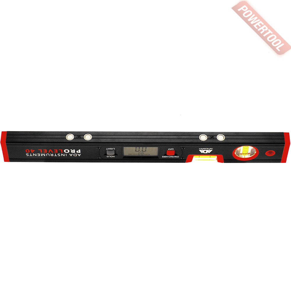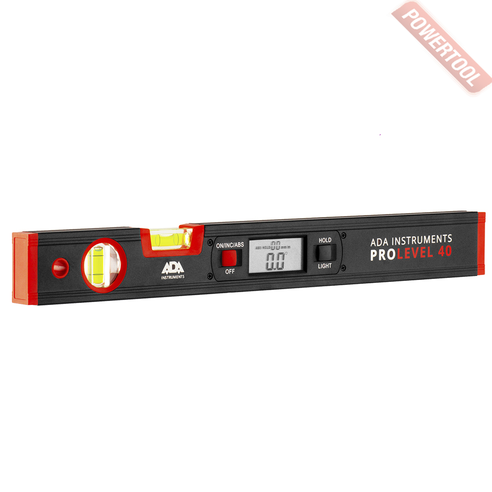 - Уровень электронный ADA ProLevel 40 для измерения углов наклона деталей и плоскостей. Удобно читаемый цифровой электронный дисплей отображает отклонение от горизонтали/вертикали, получая данные с встроенного датчика уклона (инклинометра)