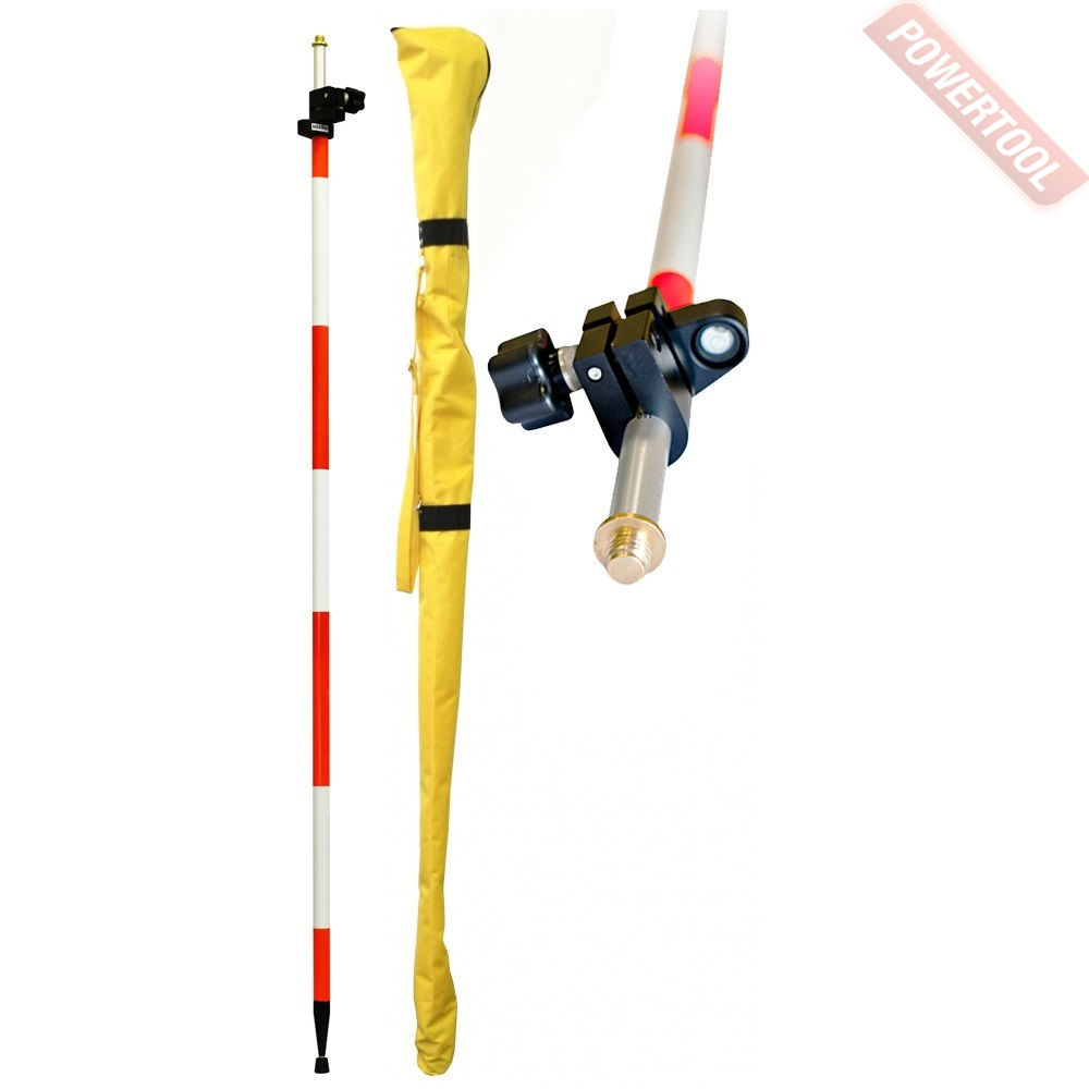 Алюминиевая телескопическая веха для установки призм и внешних GPS-антенн на высоте до 4,6 м, фиксация высоты осуществляется металлическими поворотными кольцами, резьбовое соединение 5/8 дюйма, пузырьковый уровень, вес 2,3 кг.
