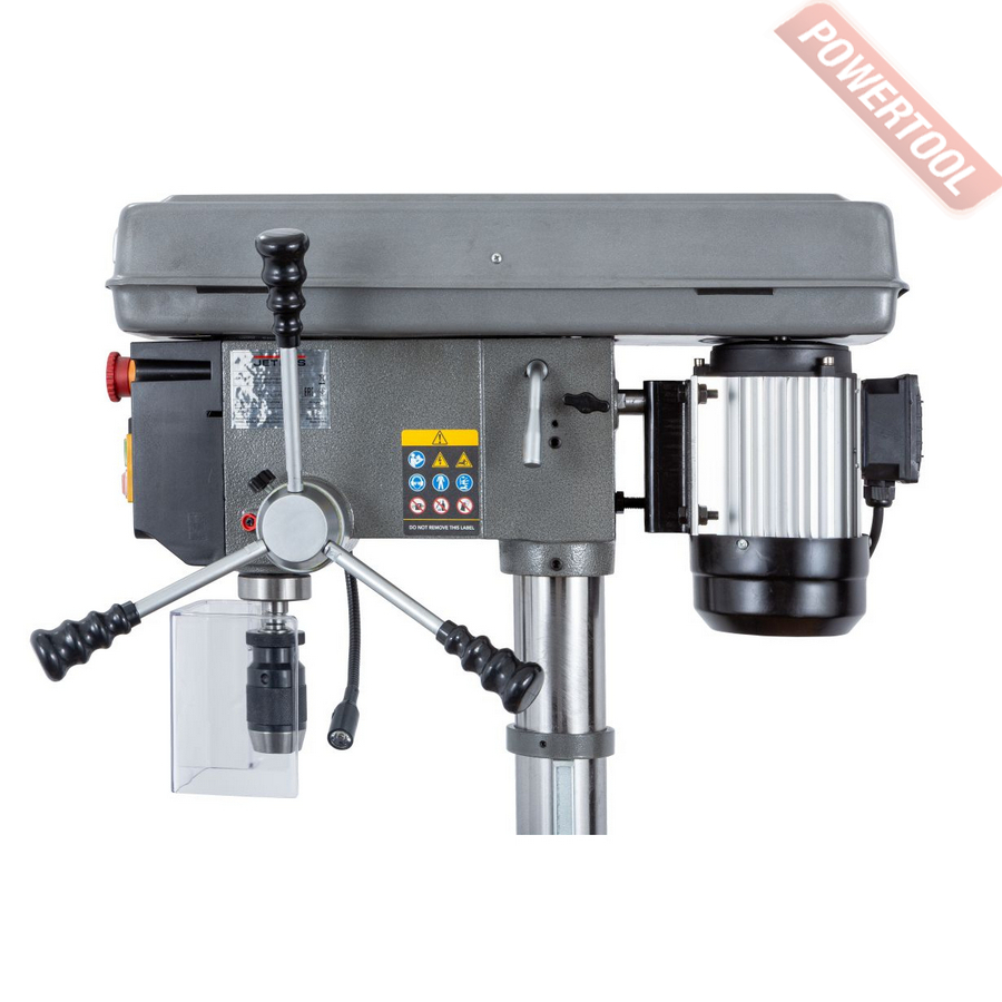 Сверлильный станок, 550 Вт, 220 В, max диаметр сверления 16 мм, max нарезка резьбы M10, частота вращения шпинделя 230-2550 об/мин, 12 скоростей, ступенчатая регулировка оборотов, реверс, конус шпинделя КМ-2, посадочное сверлильного патрона B16, диапазон хвостовиков для патрона 1-16 мм, ход пиноли шпинделя 80 мм, вылет шпинделя 190 мм, шпиндель-стол 465 мм, шпиндель-основание 690 мм, диаметр стойки 73 мм, размер основания 520х310 мм, размер стола 270х270 мм, наклон стола влево/вправо 45/45 градусов, угол поворота стола 360 градусов, 4 Т-образных паза 15 мм, подсветка рабочей зоны, габариты 665х360х1050 мм, вес 59 кг, в комплекте патрон быстрозажимной В16 1-16 мм, оправка КМ-2/B16, защитный экран.