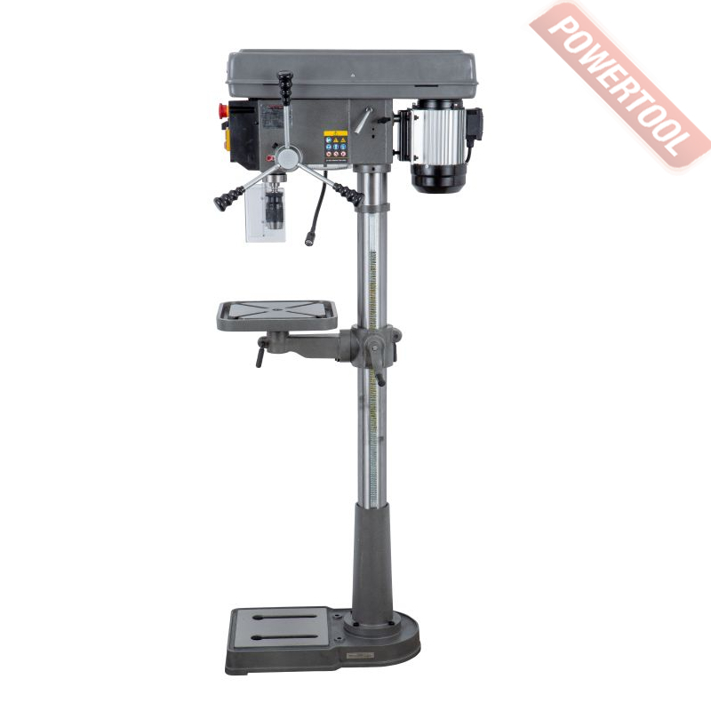 Сверлильный станок, 1100 Вт, 220 В, max диаметр сверления 16 мм, max нарезка резьбы M10, частота вращения шпинделя 180-3000 об/мин, 16 скоростей, ступенчатая регулировка оборотов, реверс, конус шпинделя КМ-2, посадочное сверлильного патрона B16, диапазон хвостовиков для патрона 1-16 мм, ход пиноли шпинделя 80 мм, вылет шпинделя 215 мм, шпиндель-стол 720 мм, шпиндель-основание 1220 мм, диаметр стойки 80 мм, размер основания 545х330 мм, размер стола 315х315 мм, наклон стола влево/вправо 45/45 градусов, угол поворота стола 360 градусов, 4 Т-образных паза 15 мм, подсветка рабочей зоны, габариты 725х380х1630 мм, вес 77 кг, в комплекте патрон быстрозажимной В16 1-16 мм, оправка КМ-2/B16, защитный экран.
