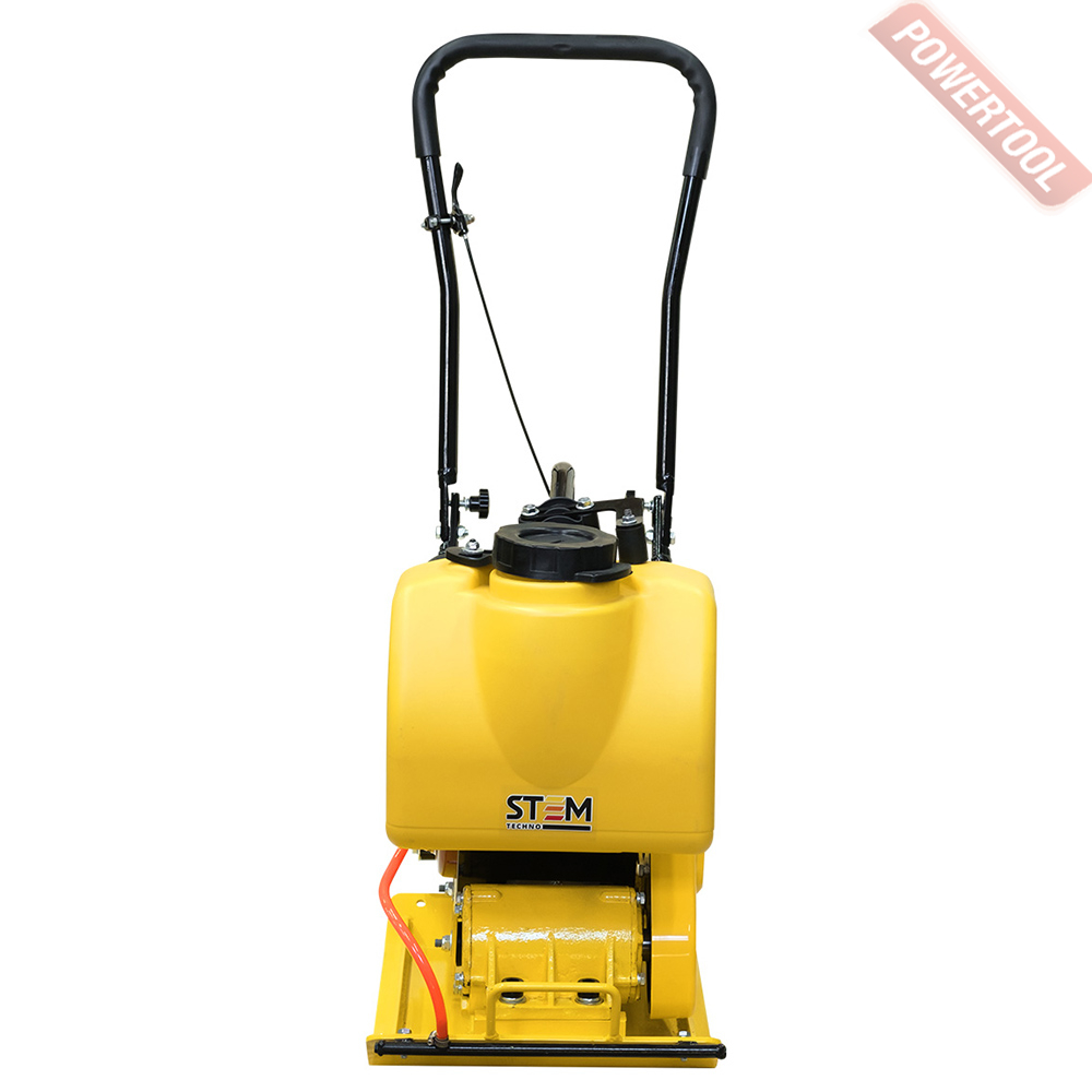 Виброплита поступательная бензиновая STEM Techno SPC 162E - одна популярных моделей, оборудована баком для воды и его защитным креплением. Есть возможность использовать с резиновым ковриком при укладке тротуарной плитки.
