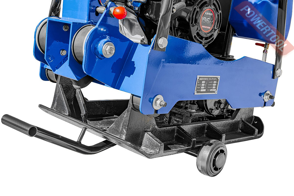 - Защитная рама над двигателем, для предотвращения повреждений, имеет специальный упор для поднятия виброплиты краном.