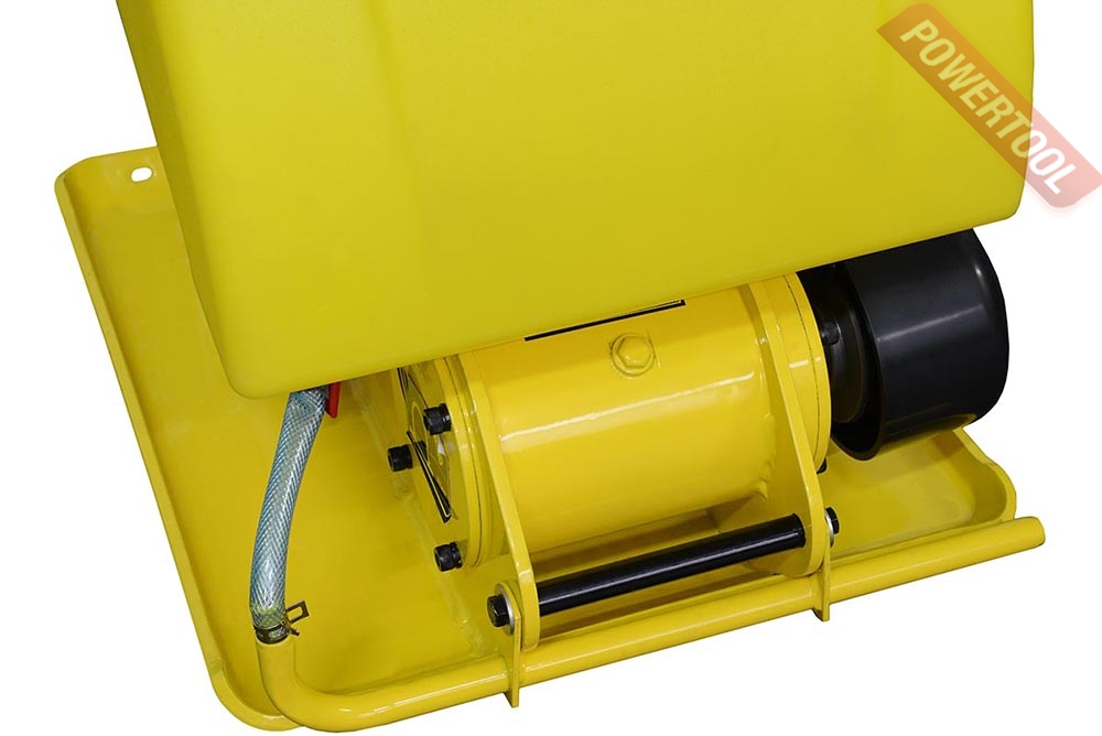 • Система орошения. Виброплита комплектуется большим баком для воды. Встроенная система орошения обеспечивает постоянный поток воды, которая равномерно распределяется по контактной поверхности плиты и не дает основанию прилипать к горячему асфальту и, впоследствии, оставаться в чистом рабочем состоянии.