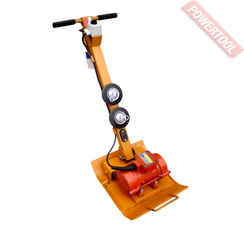 Виброплита электрическая, вес 48 кг, рабочая поверхность 380х380 мм, усилие уплотнения 5 кН, скорость перемещения 10 м/мин, механический привод, электрический двигатель мощностью 0,5 кВт, напряжение сети 220В, УЗО, размер 800х388х1000 мм.