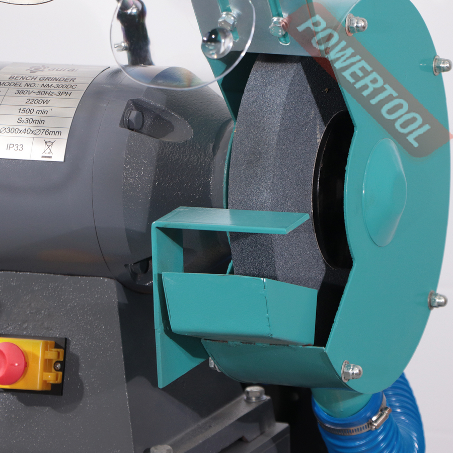 Заточной станок с пылесосом AURA TOOLS NM-300DC оборудован электродвигателем мощностью – 2.2 кВт с защитой IP 33 . Диаметр шлифовальных кругов – 300 мм. Станок оборудован светильником для освещения рабочей зоны и пылесосом для отвода и сбора абразивной пыли и металлической стружки. Мощность мотора вытяжной установки 500 Вт. Пыль собирается мешок, установленный в специальном бункере. Мешок опорожняется по мере необходимости. Мощный и надежный станок AURA NM-300DC станет отличным помощником в любом слесарном цеху, автосервисе или в инструментальной мастерской предприятия. А благодаря интегрированной в него вытяжной установки, избавит персонал от неизбежно возникающей при заточке или шлифовании пыли.